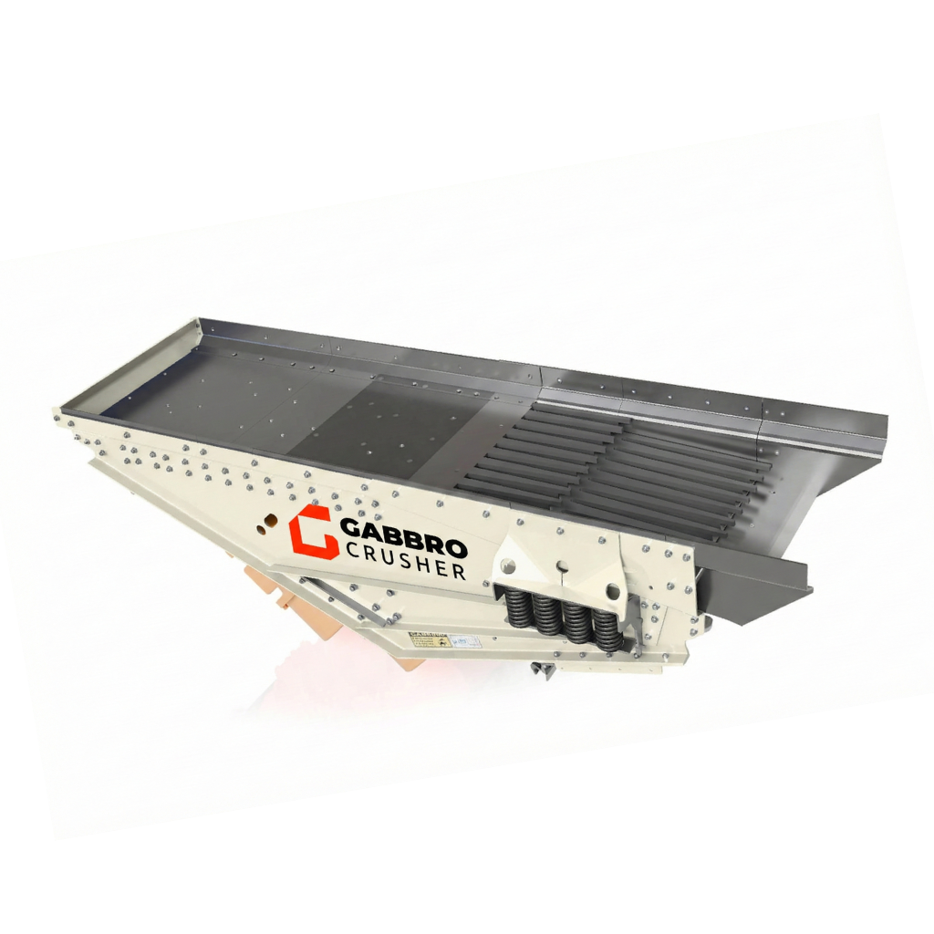 GABBRO CRUSHER’s Grizzly Feeder is designed for primary-stage applications, efficiently handling heavy-duty material feeding while separating fines before crushing. Built with a robust structure and wear-resistant components, it improves crusher efficiency, reduces load, and ensures smooth, continuous material flow in mining and quarry operations.